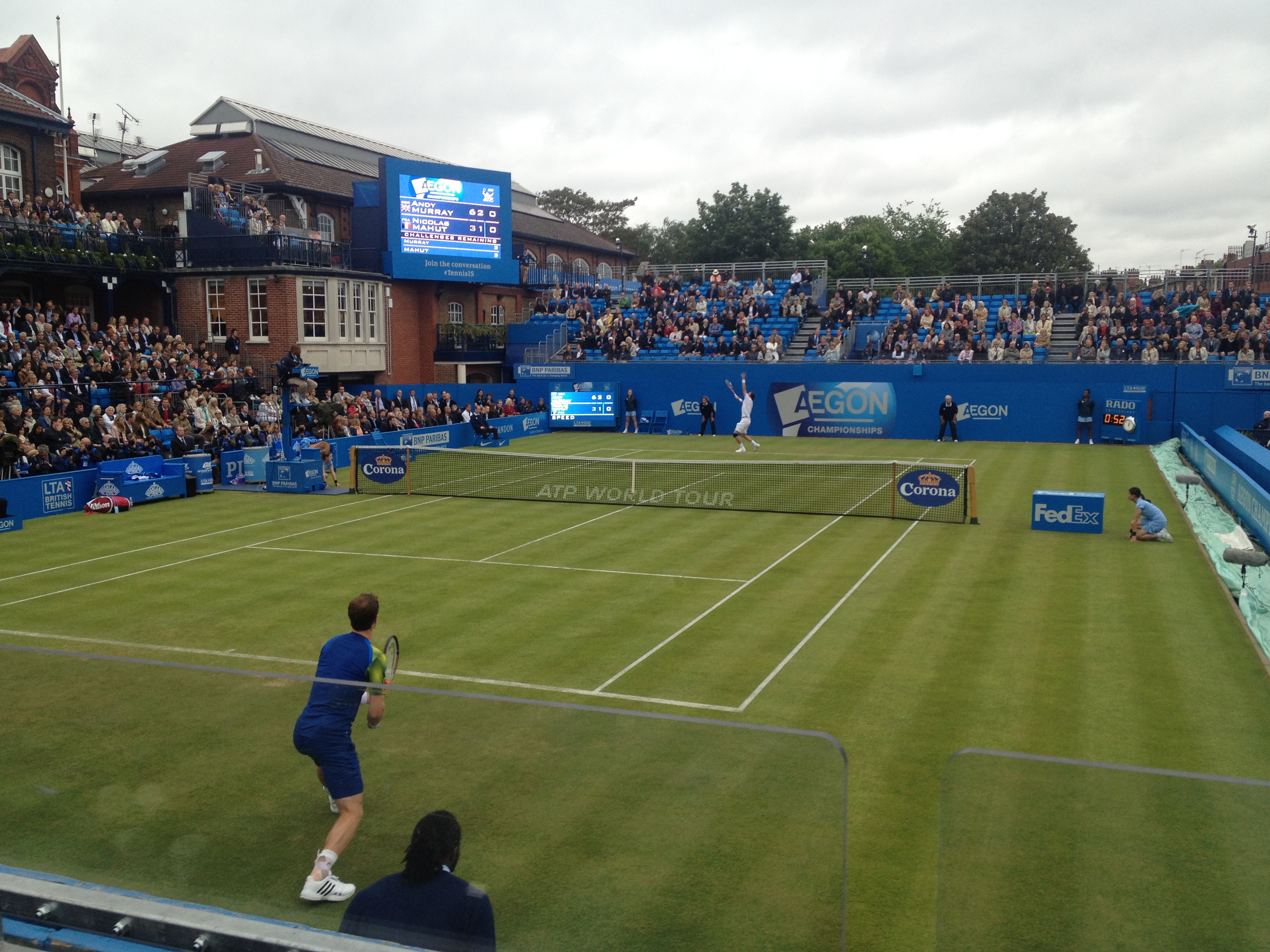Den sista dagen hade jag inget hotell på natten och tänkte därför spela poker hela dagen och hela natten tills det var dags att flyga på morgonen. Satt och spelade i pokerrummet på dagen och såg att det gick en tennisturnering på tv. Tydligen gick den precis i närheten så jag åkte dit och tittade lite, behövde en paus. Jag fick se lite av Murray innan regnet tog över…