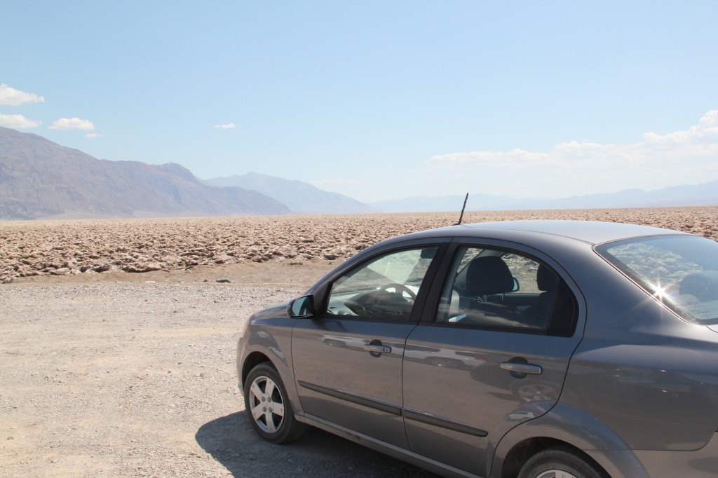 Vi startade tidigt i söndags morse och åkte till Death Valley. Det var otroligt fint och blev mitt favoritställe på roadtripen. Vi räknade med att vara där 2-3h men det slutade med att vi var där minst sex timmar. Tyvärr hade vi inte fått någon särskilt bra bil (nu i Vegas fick vi en betydligt bättre) så vi hade lite problem med uppförsbackar och värme (45-46 grader i Death Valley). Värsta var när jag hade motorbromsat lite för mycket och den helt enkelt la av. Kände att det här kan bli riktigt illa om den inte startar snart (45 grader + solinstrålning = BASTU i bilen), men lyckligtvis gick den igång efter någon minut.